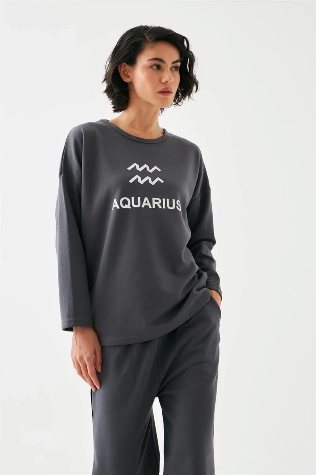 Çamaşır Kenti'nin tasarladığı Kadın Füme Kova Burcu Oversize 2 İplik Eşofman Ev Giyim Takımı, rahatlığı ve şıklığı bir arada sunuyor. Bu harika takım ile hem evde hem de dışarıda şık ve rahat bir görünüm elde edebilirsiniz.