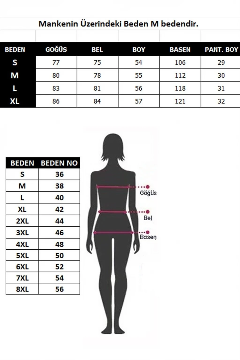 | BEDEN | GOĞÜS | BEL | BOY | BASEN | PANT. BOY |