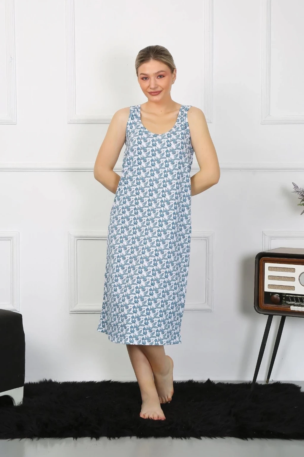 Çamaşır Kenti marka kalın askılı penye uzun gecelik, rahat ve şık tasarımıyla öne çıkıyor.