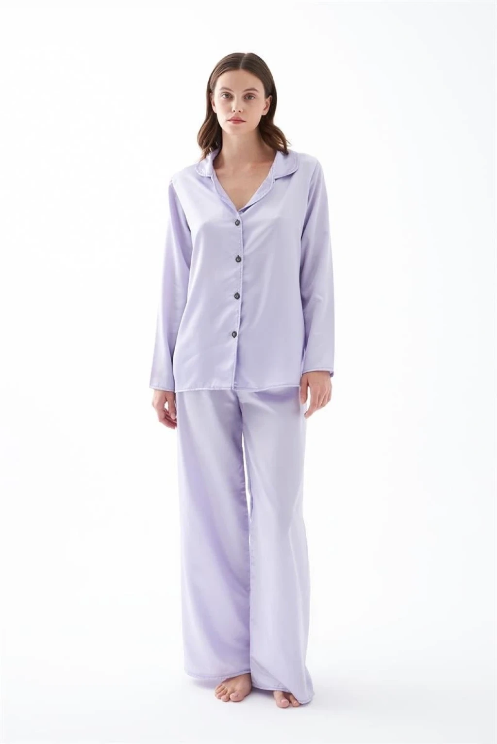 Zarif renk tonu ve konforlu tasarımıyla öne çıkan Kadın Lila Oversize Saten Pijama Takımı, akıcı saten kumaşı sayesinde gün boyu rahat ve şık bir kullanım sunar. Hafif parlak yüzeyi ürüne modern bir görünüm kazandırırken oversize kesimi vücut üzerinde dökümlü ve rahat bir duruş sağlar.