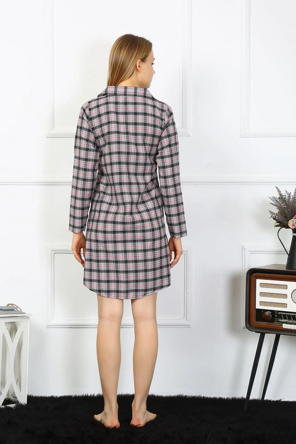 Çamaşır Kenti Kadın Penye Uzun Kol Düğmeli Siyah Tunik Gecelik
