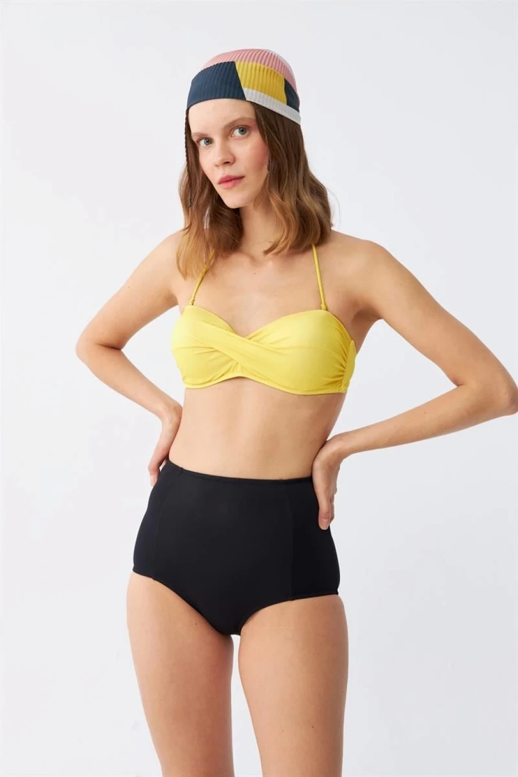 Çamaşır Kenti Kadın Straplez Sarı Yüksek Bel Bikini Takımı ile plajın şıklığını keşfedin. Hem şık hem de rahat olan bu bikini takımı, plaj günlerinizde en tarz seçiminiz olacak.