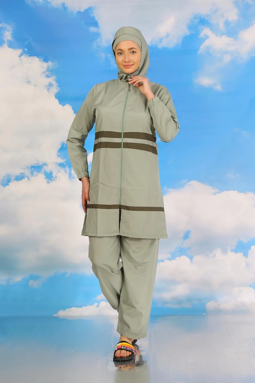 Çamaşır Kenti markasının özel tasarımı olan Kadın Tam Tesettür Mayo Su Yeşili ile plajda şıklık ve rahatlığı bir arada yaşayacaksınız.