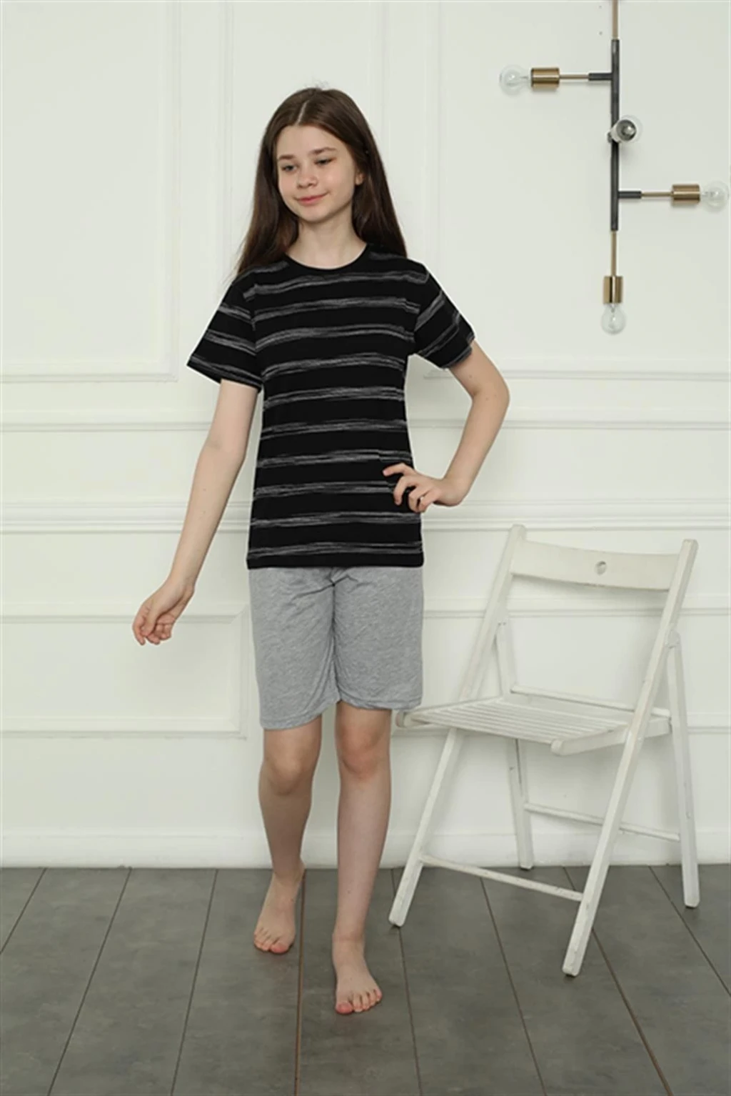 Çamaşır Kenti Kız Çocuk Penye Şortlu Pijama Takımı Siyah, rahatlığı ve şıklığı bir arada sunar.