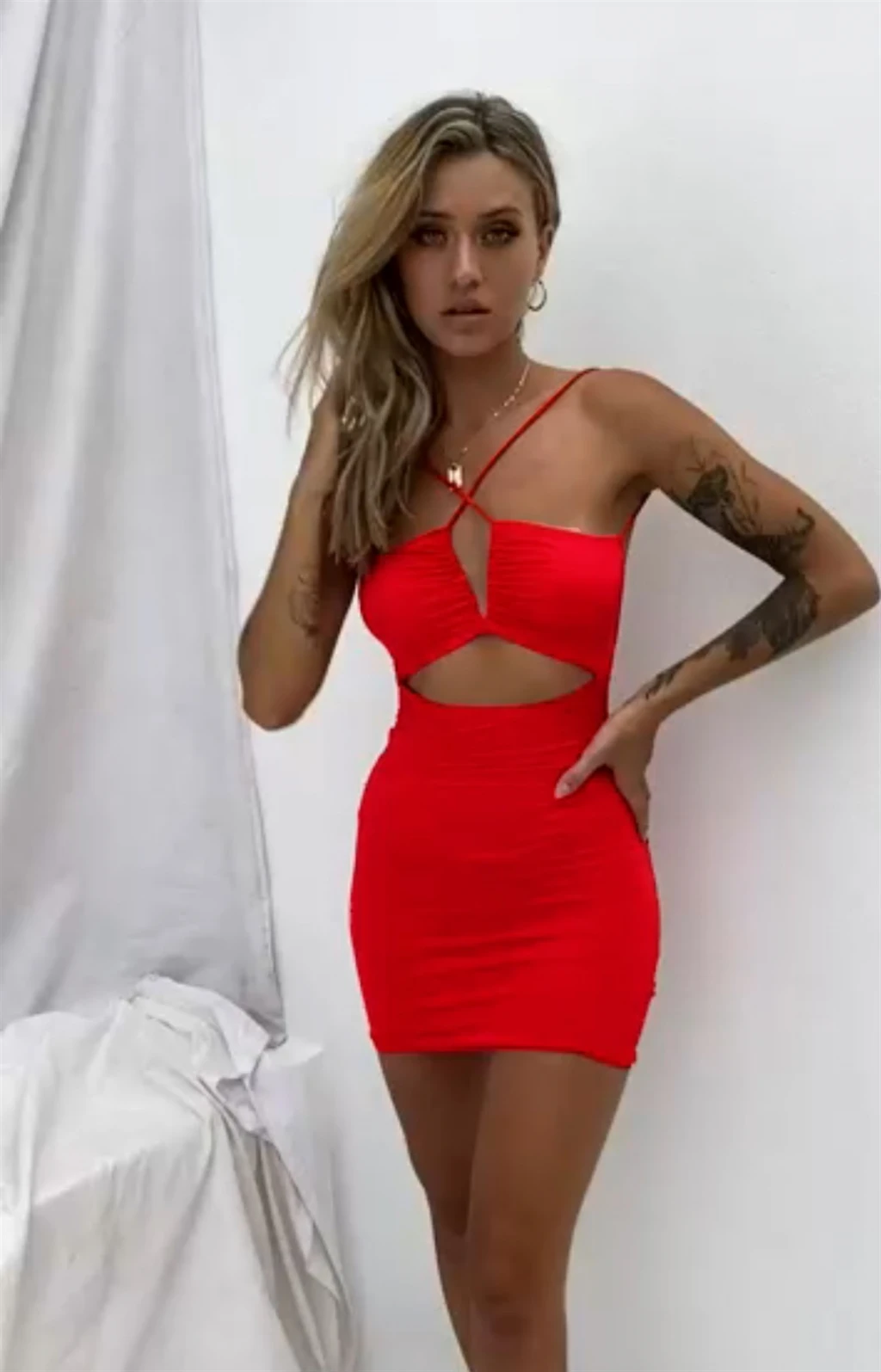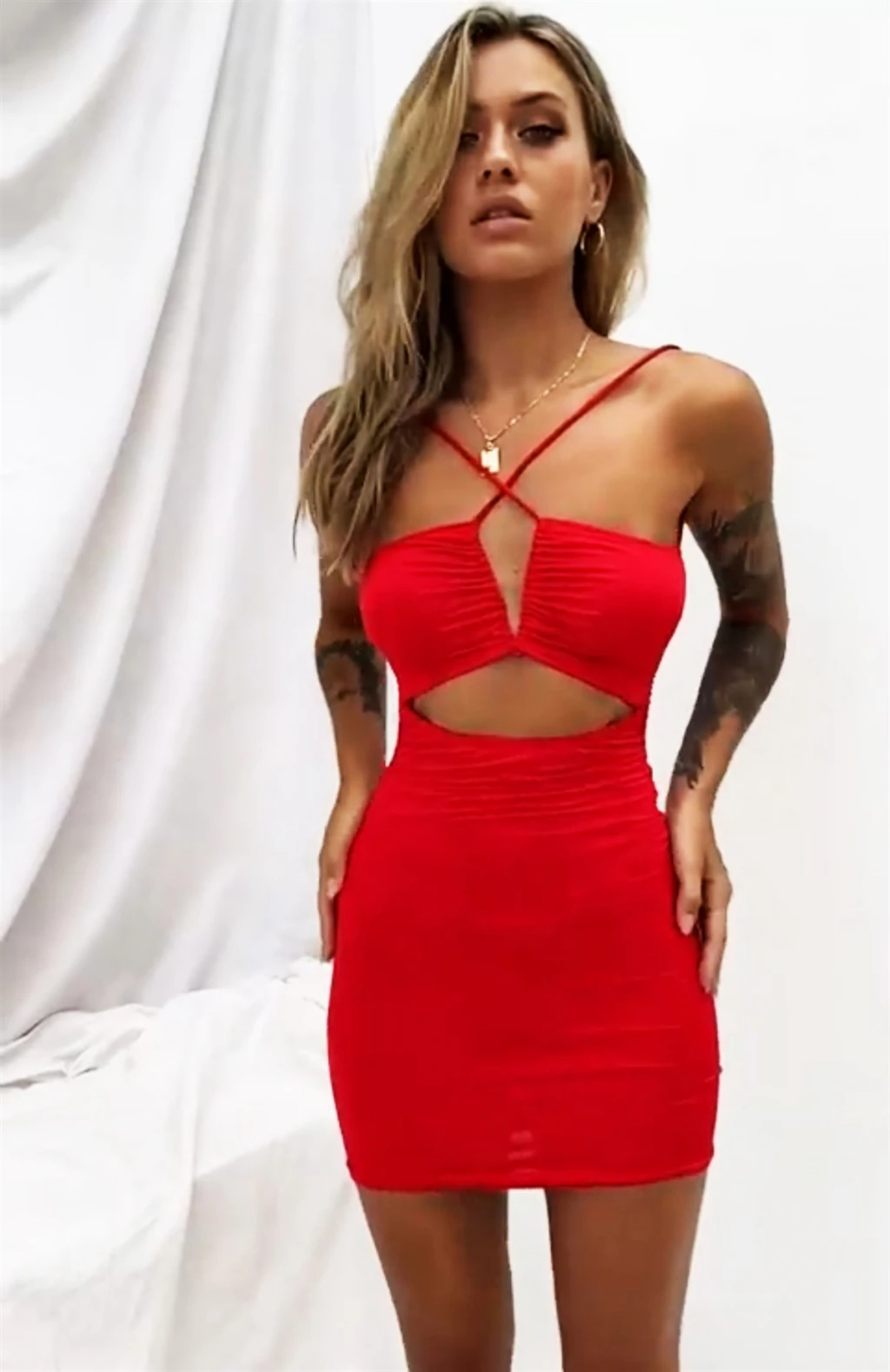 Kadın Kırmızı Fantezi Elbise Yandan Zincir Detaylı 5076
