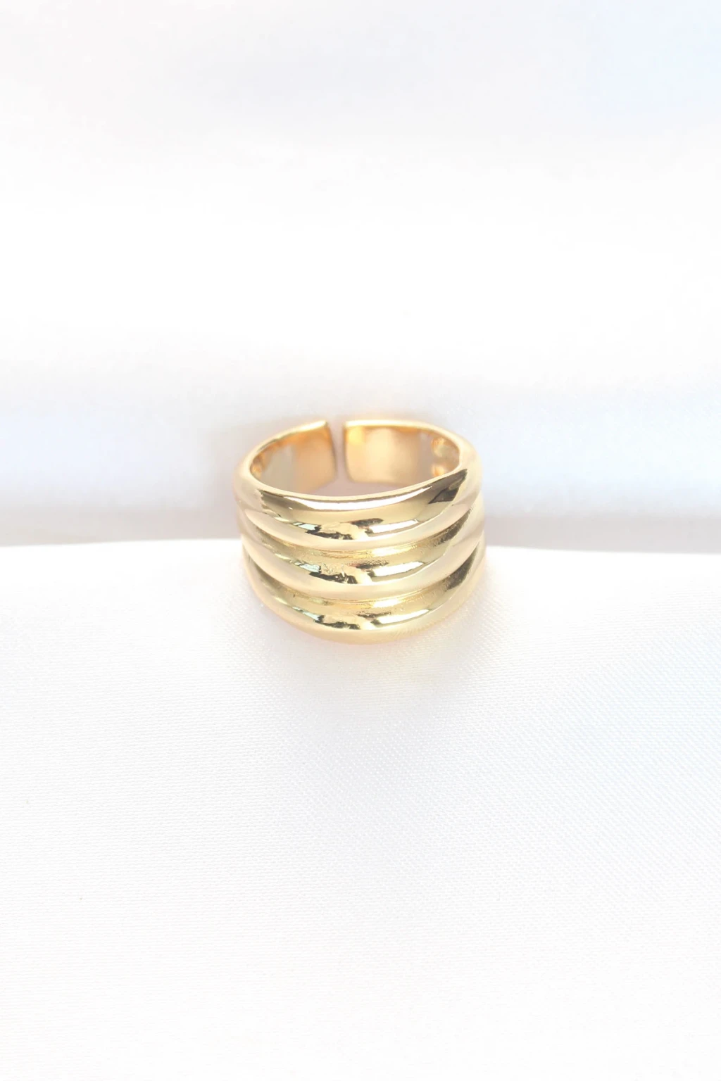 Gold Renk Ayarlanabilir Çizgili Bombe Yüzük - TJ-BYK3119