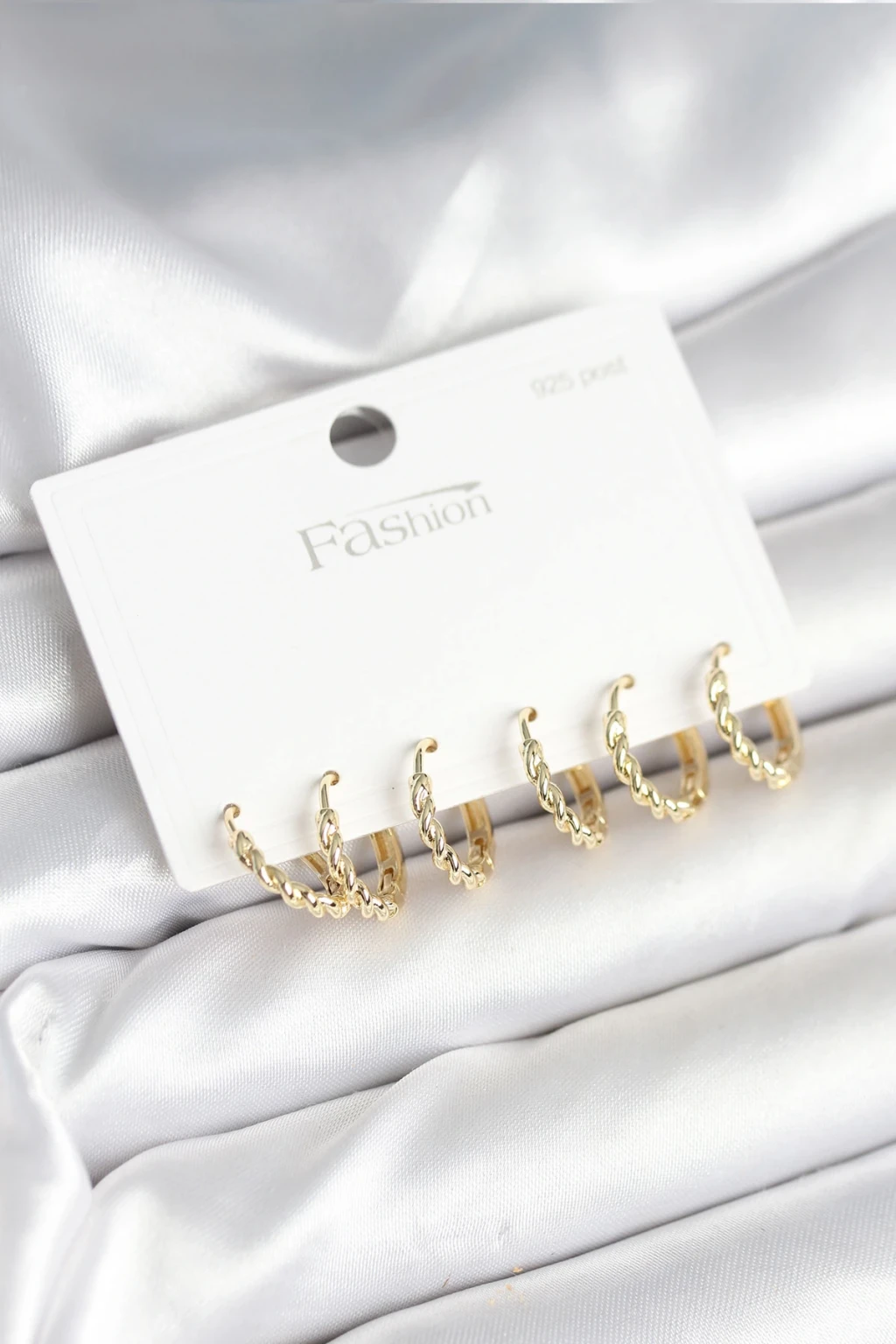 Gold Renk Burgu Halka Model 925 Ayar Gümüş Çivili Pirinç Küpe Seti - TJ-BKP11268
