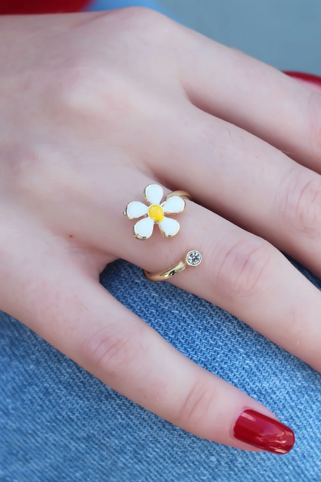 Gold Renk Papatya Model Zirkon Taş Detay Kadın Yüzük - TJ-BYK2610