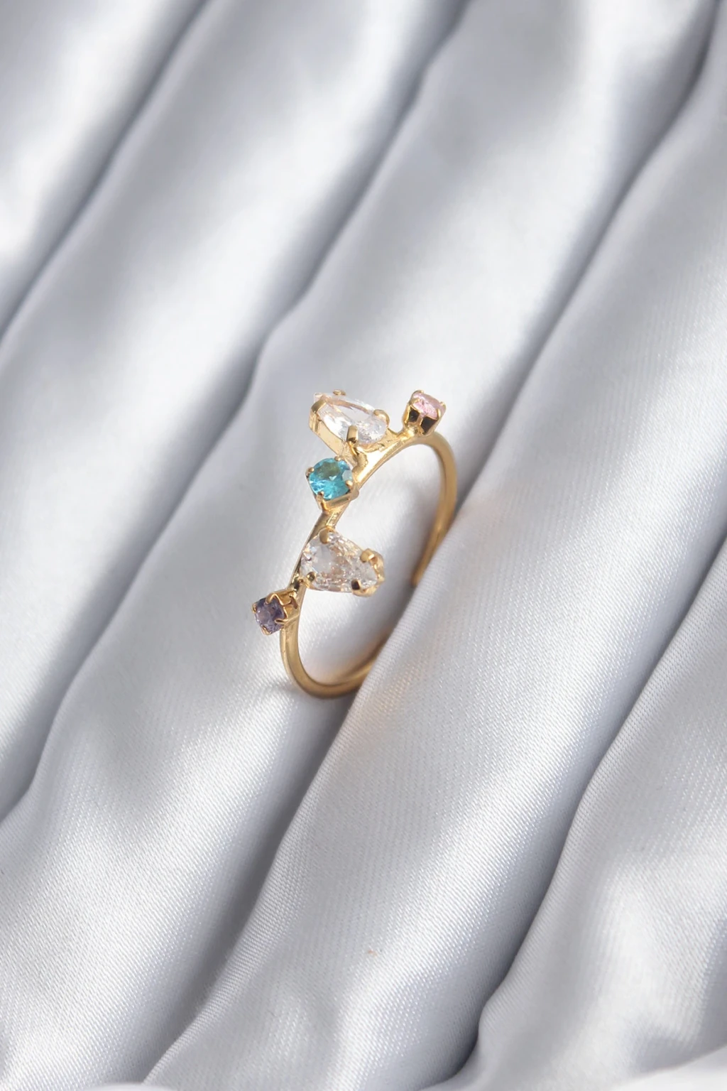Gold Renk Renkli Zirkon Taşlı Kadın Yüzük - TJ-BYK2844