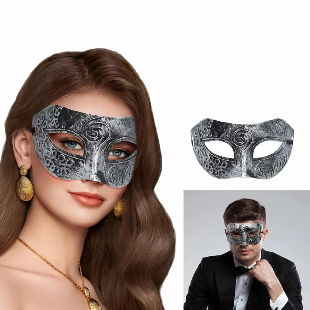 Maskeli Balo Antik Gri Gümüş Eskitilmiş Maske Balo Venedik