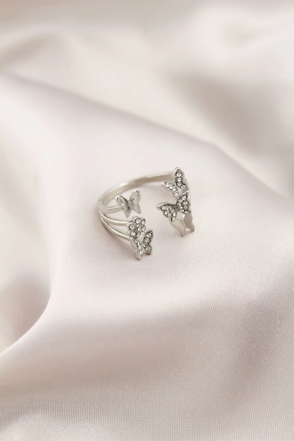 Gümüş Renk Metal Kelebek Model Kadın Yüzük - TJ-BYK2190