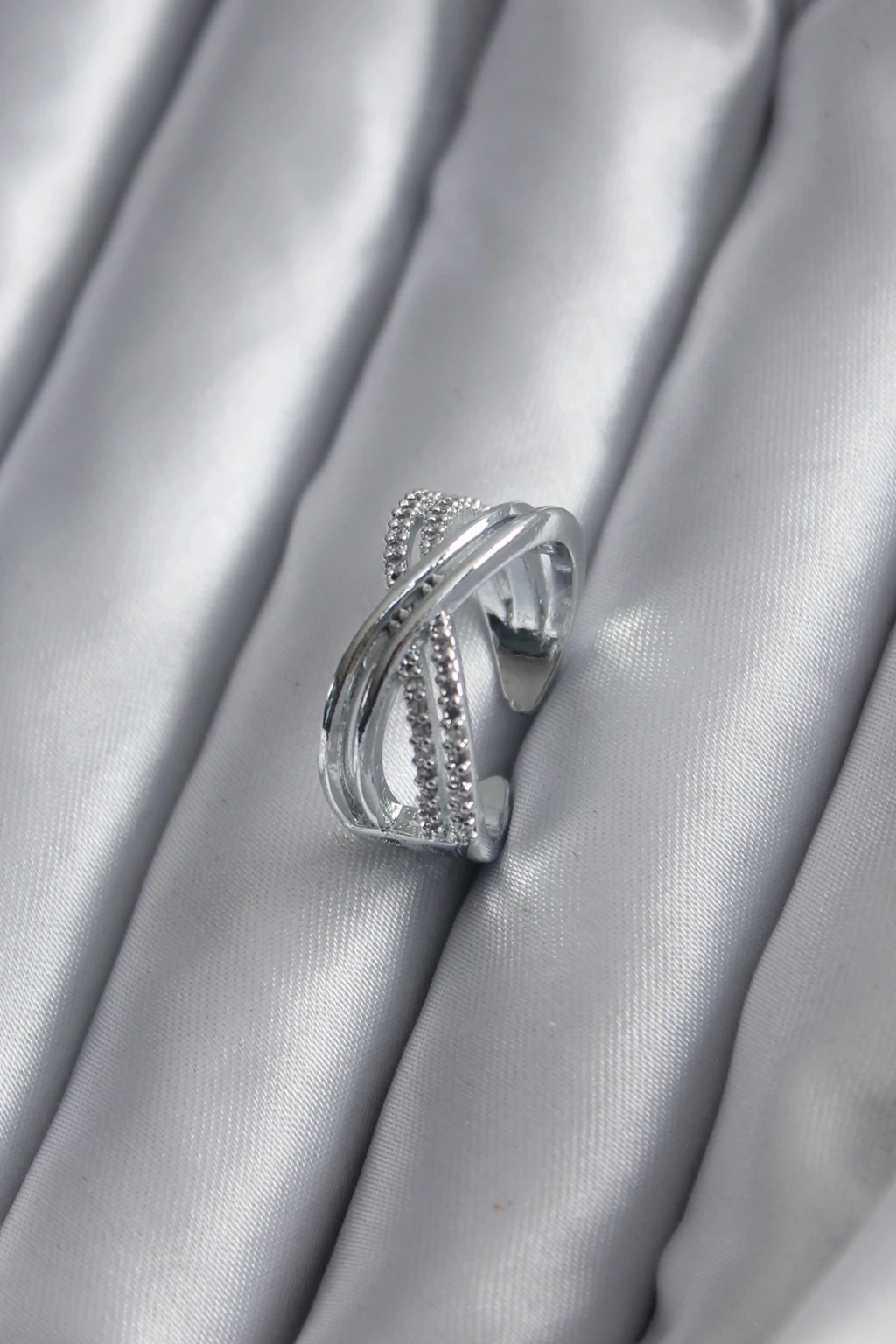 Gümüş Renk Zirkon Taşlı Kadın Yüzük - TJ-BYK2821