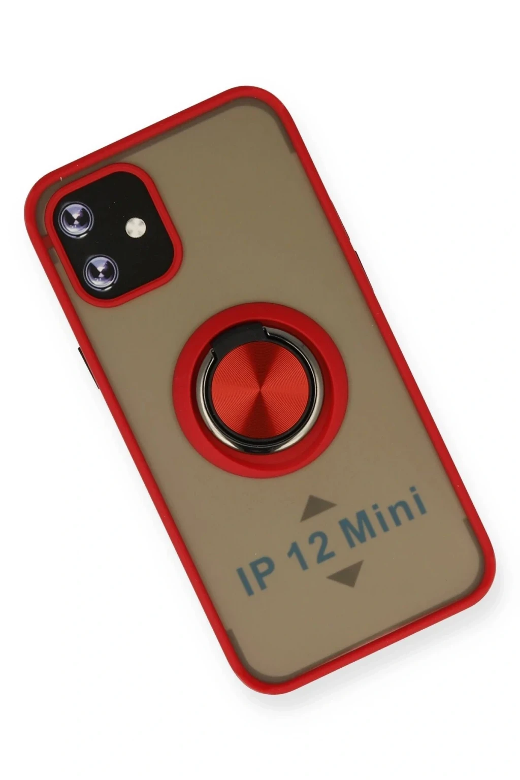 iPhone 12 Kılıf Montreal Yüzüklü Silikon Kapak - Kırmızı