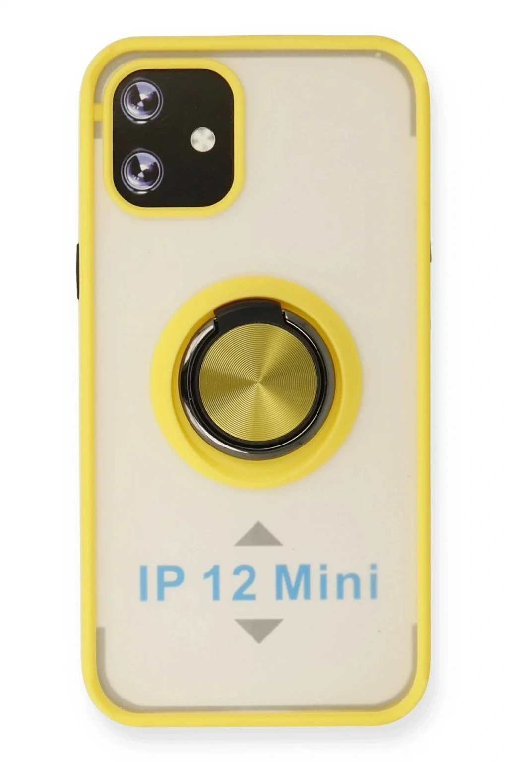 iPhone 12 Kılıf Montreal Yüzüklü Silikon Kapak - Sarı