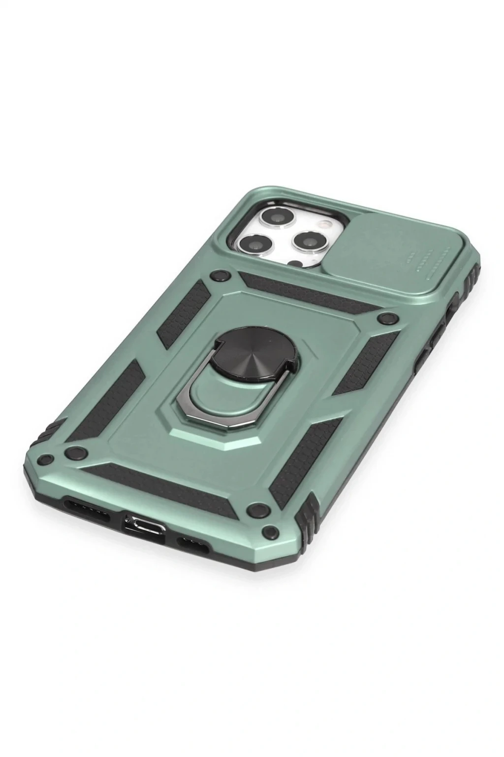 iPhone 12 Pro Max Kılıf Pars Lens Yüzüklü Silikon - Yeşil