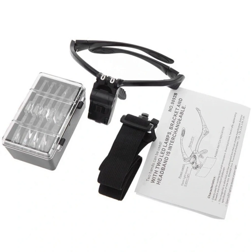 2 Adet Led ışığa Sahip Gözlük Büyüteç Eller Serbest Olarak Kullanılabilir. 5 Farklı Yakınlaştırma Ölçeğine Sahip Lens Bulunur. Kafaya Sabitlemek Için Lastik Aparatı Bulunur.