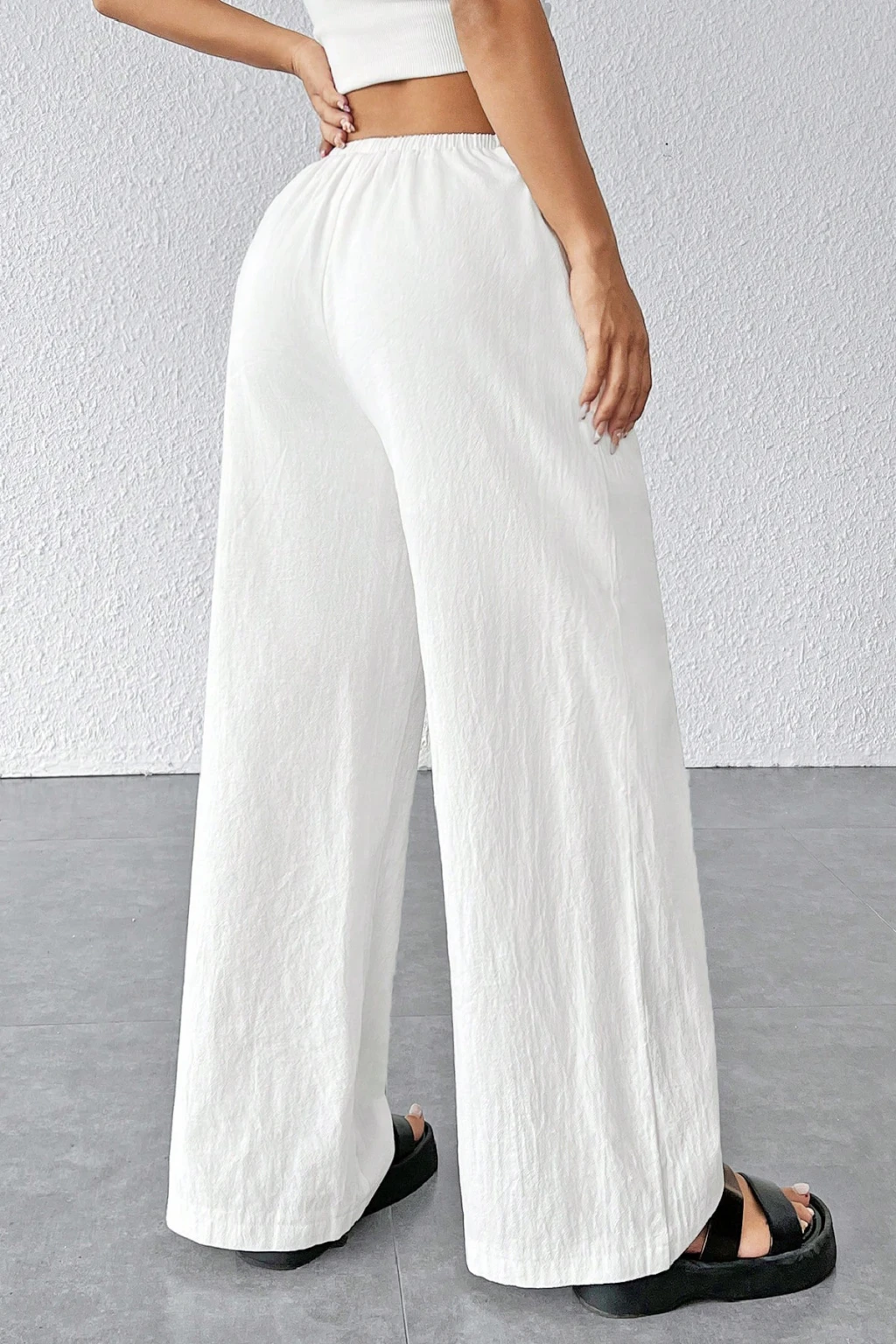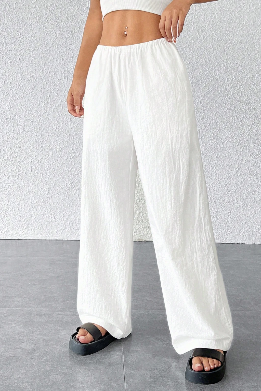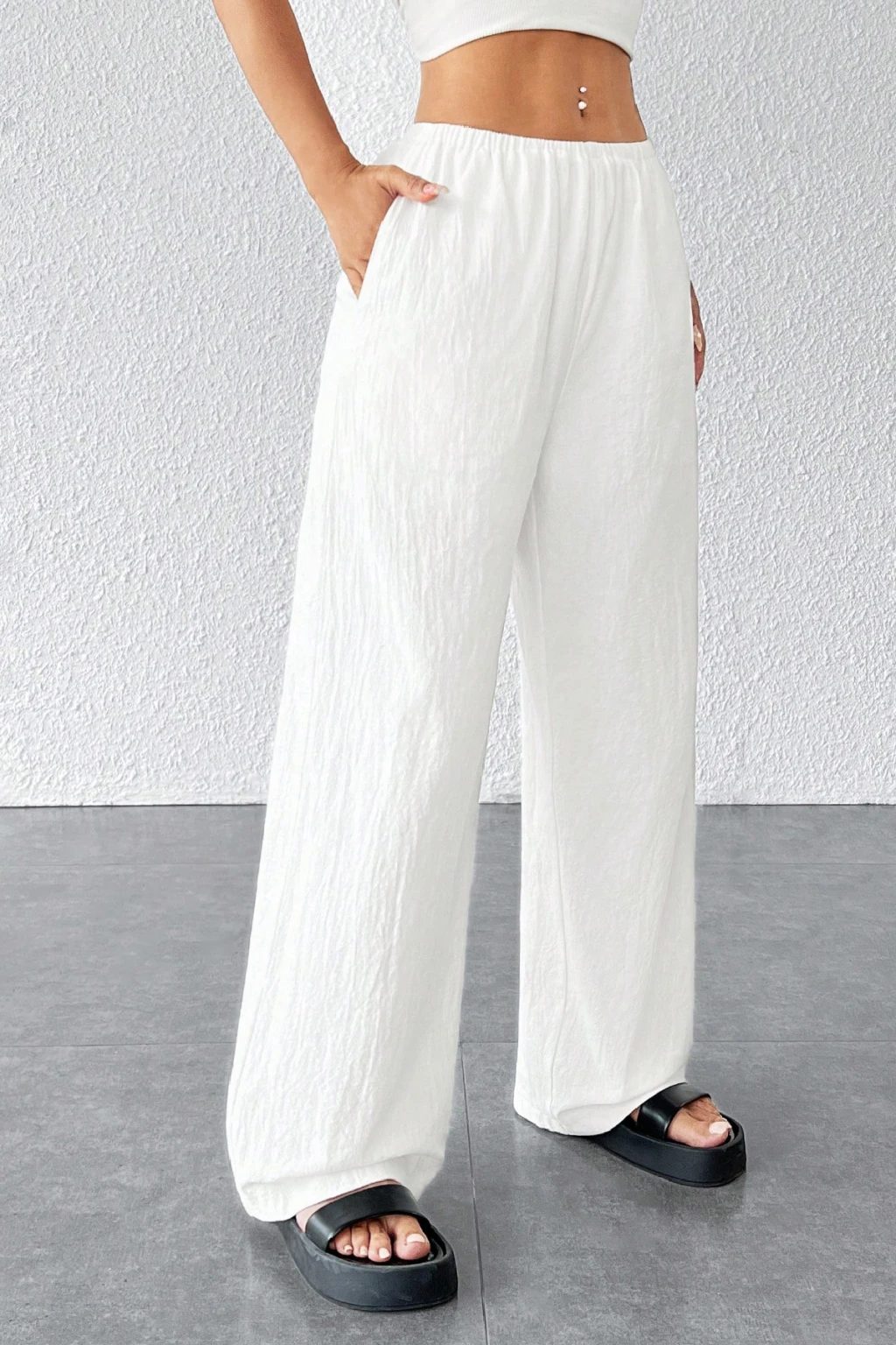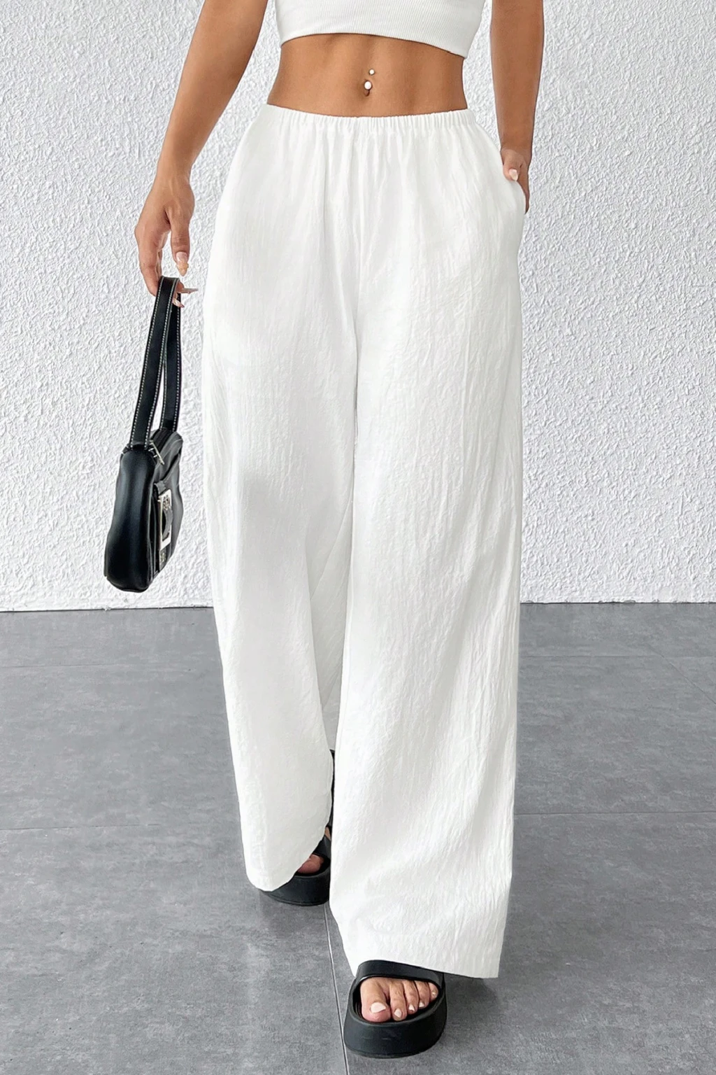 Rahat kesimi ile günlük kullanım için ideal, bol paça pantolon.Beli lastikli tasarımı sayesinde konforlu bir oturuş sunar ve vücut hatlarınıza uyum sağlar.Her mevsim rahatlıkla tercih edebileceğiniz orta kalınlıkta kumaşıyla dört mevsim konforu yaşatır.Sade ve şık görünümüyle her türlü üst giyimle kolayca kombinlenebilen düz deseni bulunur.Paça detayı ile modern ve dinamik bir siluet oluştururken, geniş paça kesimi hareket özgürlüğü tanır.Günlük kullanıma uygun casual koleksiyonun parçasıdır; hem evde hem de dışarıda rahatlıkla tercih edilebilir.Astarsız yapısıyla hafif ve nefes alabilen bir yapıya sahiptir, böylece gün boyu serin hissetmenizi sağlar.Pamuklu materyali cildinizle dosttur ve uzun süreli kullanımda bile formunu korur.Uzun boyu sayesinde bacakları olduğundan daha uzun gösterirken, normal bel yüksekliği ile zarif bir duruş sergiler.Bürümcük dokuma tipiyle yumuşak dokusuyla ayaklarınızın altında hoş bir his bırakır.Şıklık ve rahatlığı bir arada sunan kadın beyaz bol kesim geniş paçalı çift cepli dökümlü pantolon, günlük kullanım ve özel kombinler için ideal bir seçimdir.Hafif ve nefes alabilen dokulu kumaşı sayesinde yaz aylarında serinlik ve konfor sağlar.Salaş ve dökümlü duruşuyla modern bir tarz oluştururken, cepli tasarımıyla da pratik kullanım sunar.Lastikli beli sayesinde vücuda uyum sağlayarak rahat hareket imkânı verir.Günlük gezilerde, tatilde ya da ofis şıklığında kolayca kombinlenebilen bu kadın pantolon, beyaz rengiyle her tarza uyum sağlar.Spor ayakkabı, sandalet ya da topuklu ayakkabı ile rahatça tercih edebilirsiniz.Gardırobunuzun vazgeçilmez parçası olacak bu model, hem şık hem de konforlu giyinmek isteyenler için idealdir.Renk: BeyazModel: Bol kesim, geniş paçaDetay: Çift cepli, dökümlü dokulu kumaşBel: Lastikli, rahat kullanımTarz: Günlük, yazlık, salaş, modern]]>