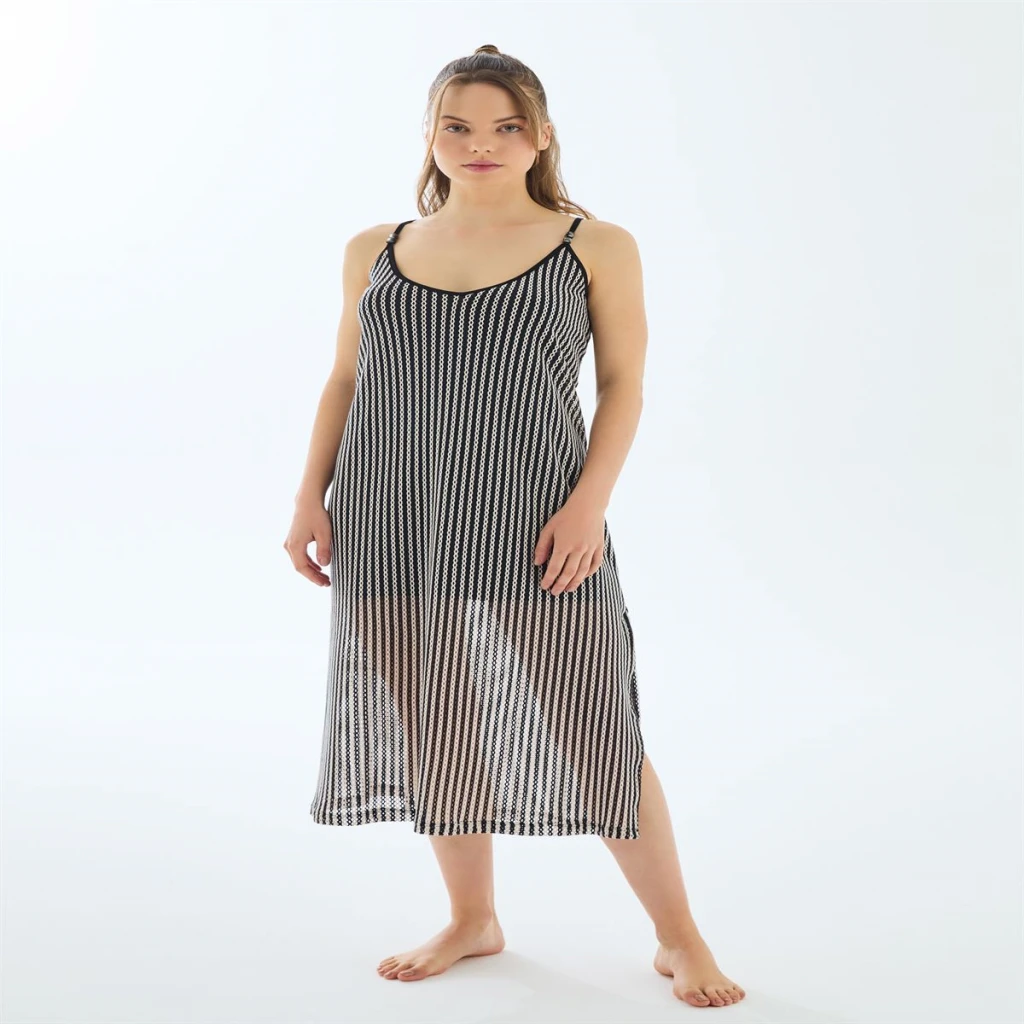 Kadın Siyah Beyaz Pareolu Yandan Ve Boyundan Bağlamalı 3'lü Bikini Takımı