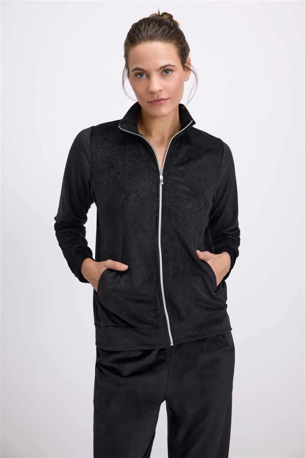 ’ın 11548 kodlu bu özel takımı, modern çizgileri ve konfor odaklı kumaş yapısıyla ev şıklığını spor bir zarafetle buluşturuyor. Minimalist tasarımı, zasız siyah rengi ve kadifemsi dokusuyla her mevsim kullanıma uygun bir konfor alanı yaratıyor.Kumaşında kullan %92 polyester ve %8 elastan karışımı, hem dayanıklılık hem de esneklik sağlar. Hafif parlak yüzeyiyle sofistike bir duruşa sahip olan kumaş, yumuşak dokusuyla cildi nazikçe sarar. Esnek yapısı sayesinde hareket özgürlüğü sunar ve gün boyu rahat bir kullanım sağlar.Üst parça, fermuarlı sweatshirt tasarımıyla hem pratik hem de modern bir görünüm kazandırır. Hafif dik yakası ve gümüş fermuar detayı, sade şıklığı güçlendirirken aynı zada günlük kullanıma sportif bir dokunuş ekler. Gövde ve kol kısmında yer alan kadife dokulu yüzey, yumuşacık bir his verir ve ürüne zarif bir doku kazandırır.Alt parça ise, aynı kumaş yapısında tasarlanmış düz kesim pantolondur. Elastik beli vücuda rahatça uyum sağlarken, sade kesimiyle dengeli bir siluet oluşturur. Kumaşın doğal dökümlülüğü, hem konforu hem de zarafeti ön plana çıkarır.Bu takım, evde rahatlıkla vakit geçirirken şık görünmek isteyen kadınlar için tasarlandı. Sabah kahvesinden akşam dinlenmesine, seyahatten hafta sonu keyiflerine kadar her anınıza uyum sağlar.Detaylar:Ürün kodu: 11548Renk: SiyahKumaş içeriği: %92 Polyester, %8 ElastanFermuarlı uzun kollu üstDüz kesim, elastik bel pantolonKadifemsi dokulu, yumuşak yüzeyHafif parlak, sofistike görünümEsnek, rahat ve formunu koruyan yapı Kullanım Önerisi:Soğuk mevsimlerde ev giyimi olarak, seyahatlerde veya hafta sonu kombinlerinde rahatlıkla kullabilir. Düşük ısıda yıkayarak kumaşın yumuşaklığını uzun süre koruyabilirsiniz. İsterseniz aynı kumaştan üretilmiş elbise veya sabahlık modelleriyle tamamlayarak bütünlüklü bir stil elde edebilirsiniz.