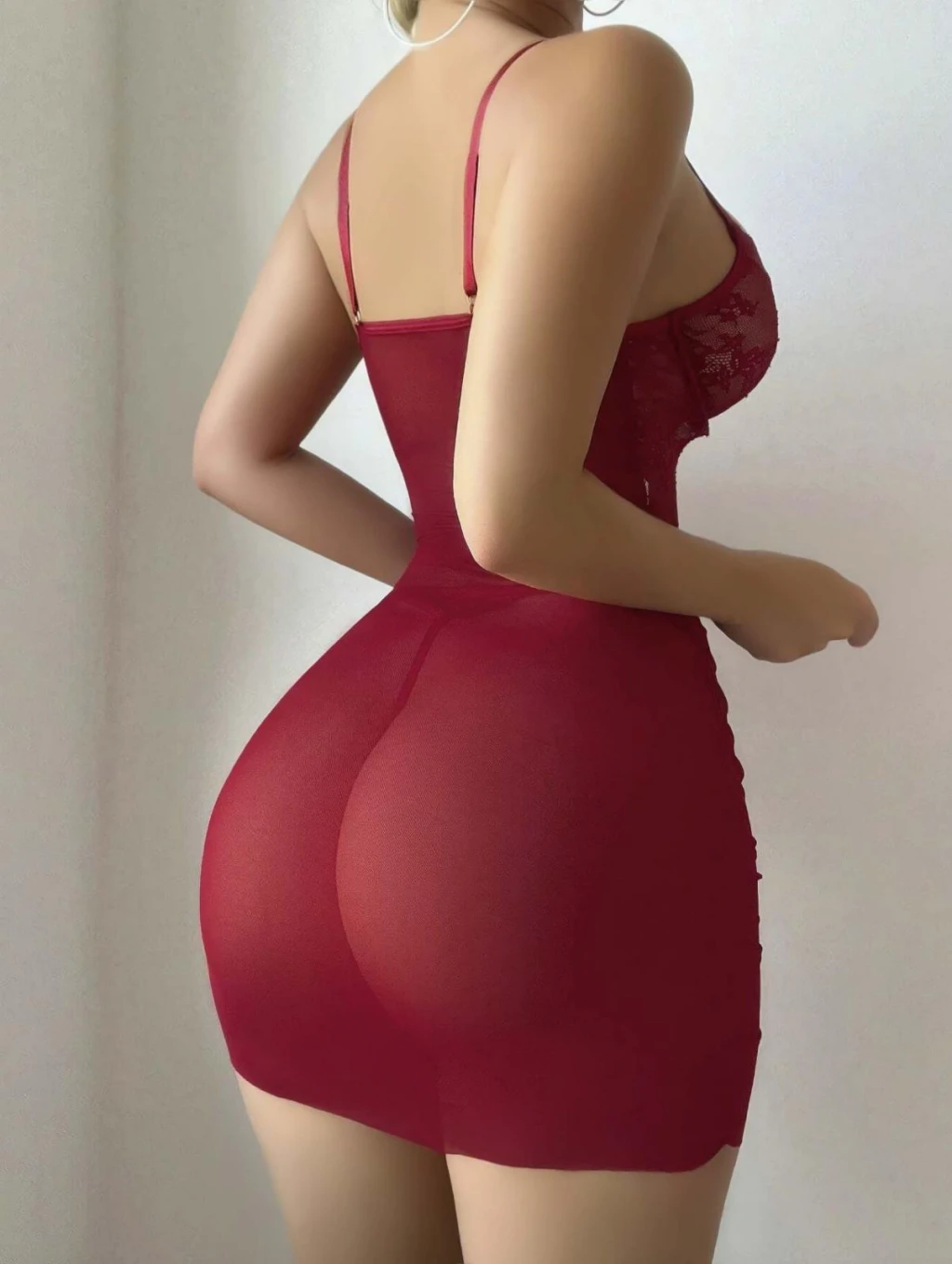 Kadın Kırmızı Fantazi Gecelik Tül Dantel Fiyonk Detaylı Askılı 2209