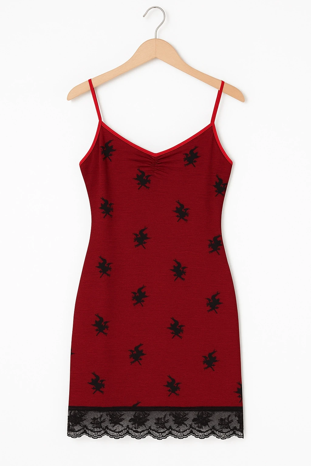 Kadın Transparan Dantel Detaylı Şık Kırmızı Fantezi Gecelik 2099