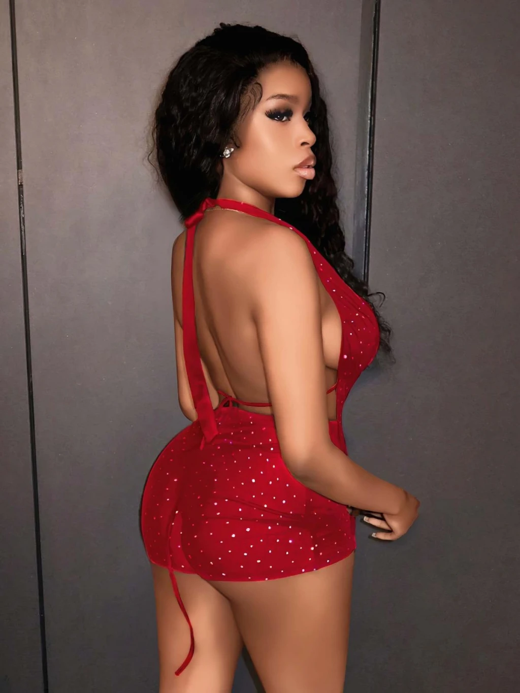 Özel Tasarım Işıltılı Sırt Zincir Dekolteli Fantezi Mini Club Elbisesi
