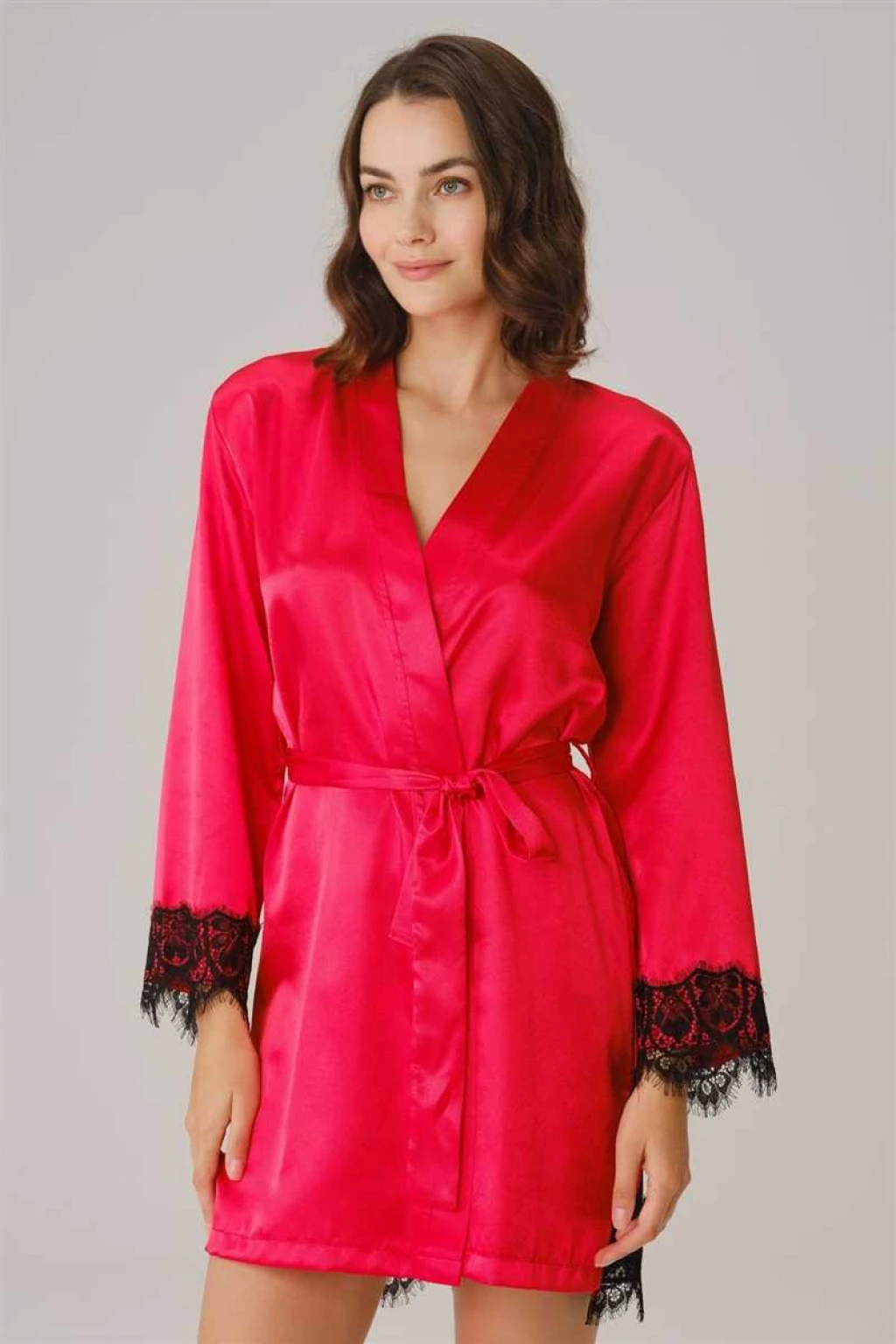 Kısa Ad:Kadın Saten Sırt Detaylı Dantelli Sabahlık ve String Takım (5738)