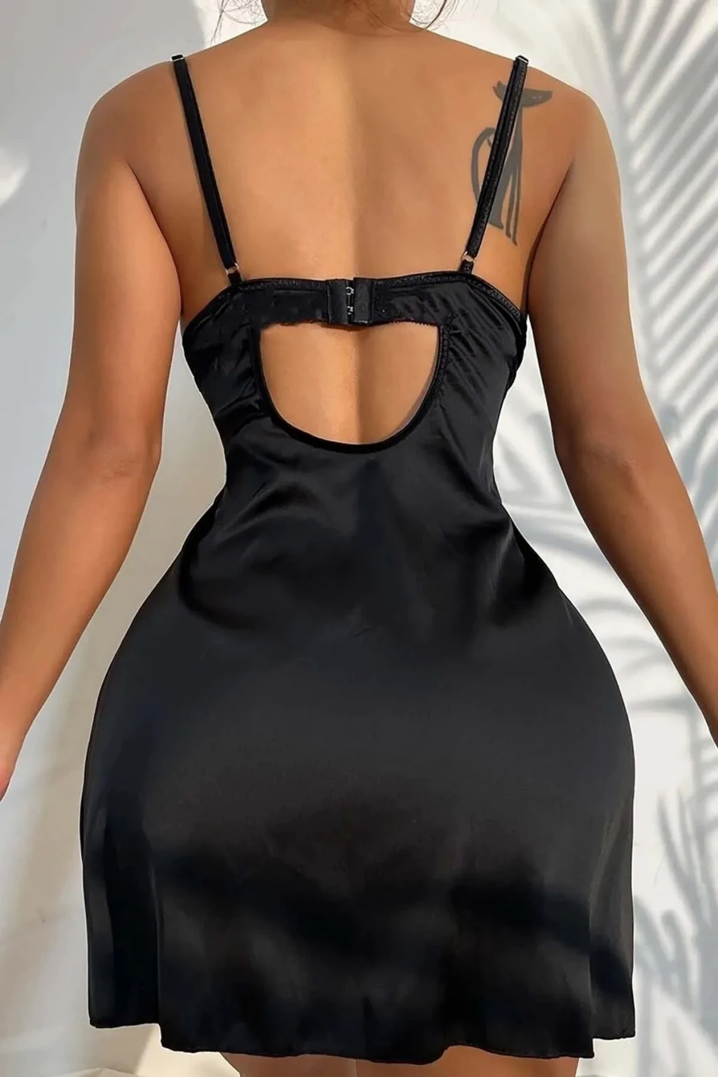 Kadın Siyah Yırtmaçlı Göğsü Dantelli Agraflı Gecelik