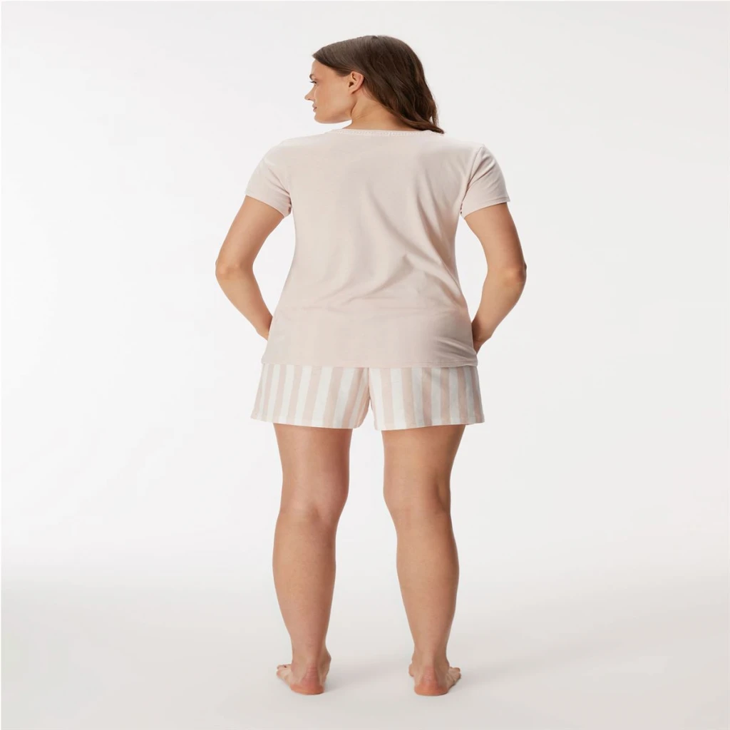 Kısa Kol Bisiklet Yaka Kadın Viskon Çiçek Desenli Yazlık Örme Dantel Detaylı Pijama Takımı