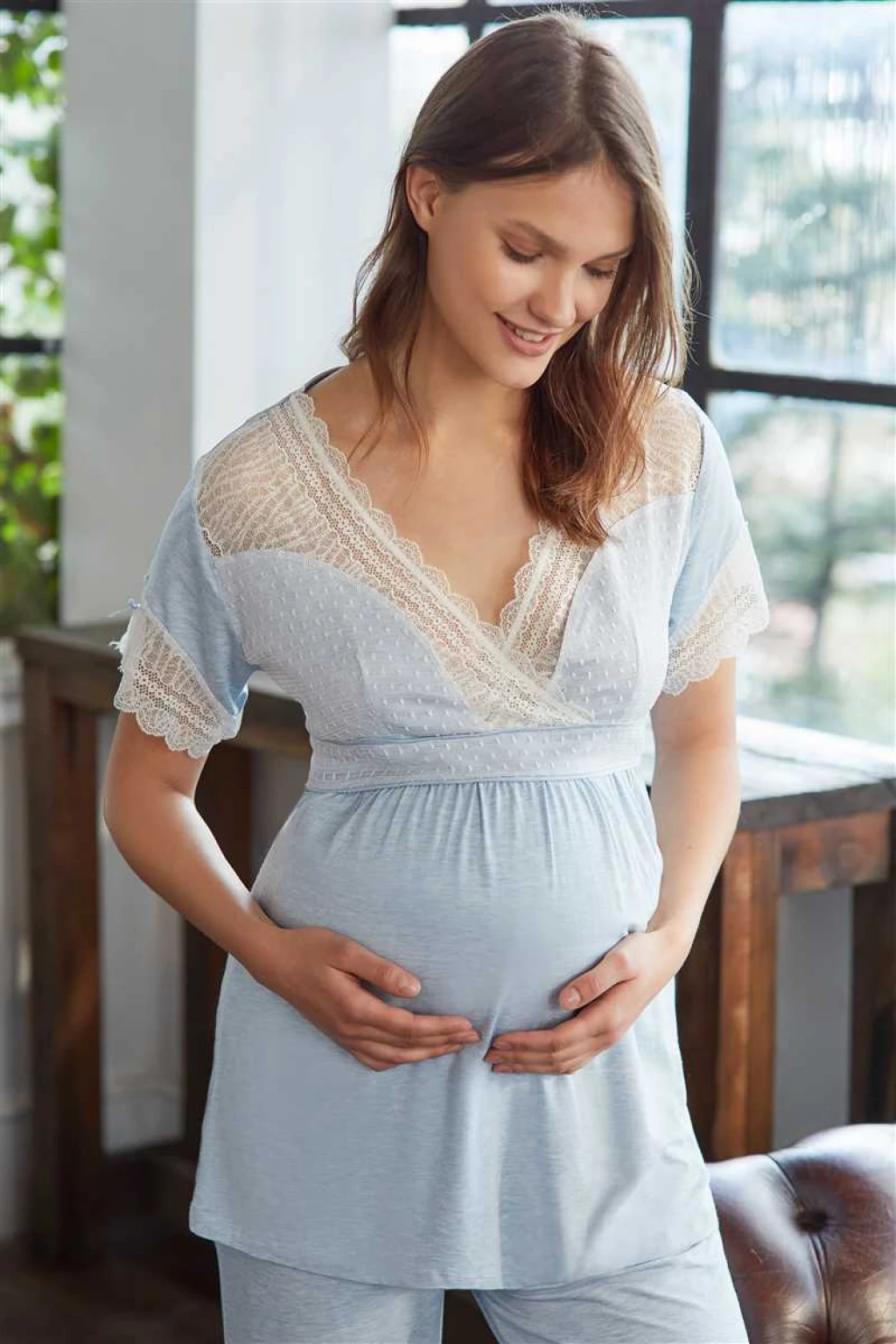 9603 Kadın Viskon Hamile Lohusa Dantelli Sabahlık Önden Açılan Emzirme T-Shirt ve Pantolon Pijama 3'lü Takım 9603 Lohusa 3’lü Takım, hamilelik ve lohusalık sürecindeki annelere özel olarak tasarlanmış, rahatlık, şıklık ve fonksiyonelliği bir araya getiren mükemmel bir iç giyim setidir. Viskon kumaşı ile cildinize nazikçe sarılırken, dantel detayları zarif bir şıklık katar. Önden açılabilen emzirme tasarımı, annelerin emzirme sürecinde konforlu bir deneyim yaşamalarını sağlar. Bu takım, sabahlık, emzirme t-shirt ve pantolon pijama olmak üzere üç parçadan oluşur ve her biri rahatlıkla kombinlenebilir. Şıklığından ödün vermeden her anınızı konforlu hale getirir.Öne Çıkan Özellikler:Viskon Kumaş: Takımın üretiminde kullan viskon kumaş, hafif, yumuşak ve nefes alabilen bir yapıya sahiptir. Bu kumaş, hem yaz aylarında serin tutar hem de kışın sizi sıcak tutar. Cildinizin nefes almasını sağlayarak, lohusalık dönemi boyunca rahatsızlık hissetmenizi engeller. Viskon kumaş, vücuda oturan ama sıkmayan yapısıyla, sizi rahatça sarar ve her türlü aktiviteye uygun konfor sunar.Dantel Detaylar: Dantel süslemeler, takıma zarif bir dokunuş katarken, aynı zada feminen bir hava yaratır. Sabahlık, t-shirt ve pantolon üzerinde yer alan dantel detayları, ürüne hem şıklık hem de zarif bir görünüm kazandırır. Lohusa dönemi gibi özel bir süreçte, bu detaylar şıklığınızı korurken rahatlığınızdan da ödün vermezsiniz.Önden Açılabilen Emzirme Tasarımı: Emzirme t-shirt'ü, önden açılabilen tasarımı sayesinde annelere kolayca emzirme imkanı sunar. T-shirt'ün ön kısmındaki açılabilir yapı, emzirme sırasında pratiklik sağlar. Elinizi serbest bırakır, böylece bebeğinizi rahatça emzirebilirsiniz. Bu özellik, dışarıda ya da evde emzirmeyi kolaylaştırırken, size pratiklik ve konfor sunar.Rahat Sabahlık: Takımda bulunan şık sabahlık, vücudu nazikçe sarar ve lohusalık dönemindeki değişen vücut hatlarınıza uyum sağlar. Dantel detayları ve zarif kesimiyle sabahlık, sizi hem rahat tutar hem de şık bir görünüm sunar. Evdeki rahat anlarınızda veya doğum sonrası dinlenme anlarınızda kullanabileceğiniz mükemmel bir parçadır.Emzirme T-Shirt ve Pantolon Pijama: Takımda yer alan emzirme t-shirt ve pantolon pijama kombinasyonu, hem rahat hem de şık bir uyum sağlar. T-shirt, önden açılabilen yapısı sayesinde pratikliği artırırken, pantolon pijama ise geniş bel kısmı ve rahat kesimiyle lohusa annelere konfor sunar. Pantolonun esnek yapısı, tüm gün boyunca rahat hareket etmenizi sağlar. Hem evde rahatça dinlenmek hem de emzirme sürecinde rahatlıkla hareket etmek için mükemmel bir tercihtir.Çok Amaçlı Kullanım: 9603 Lohusa Takımı, yalnızca uyku sırasında değil, aynı zada gündüz saatlerinde de rahatça kullabilir. Sabahlık, hem gündelik kullanımda hem de lohusa dönemi boyunca evde rahatça giyilebilir. Emzirme t-shirt'ü ve pijama pantolon, günlük yaşamda hem şıklığınızı hem de rahatlığınızı korur. Bu takım, lohusalık dönemi boyunca size hem şıklık hem de konfor sağlar. İçerik Bilgisi: 92 % Vi 8 % Ea