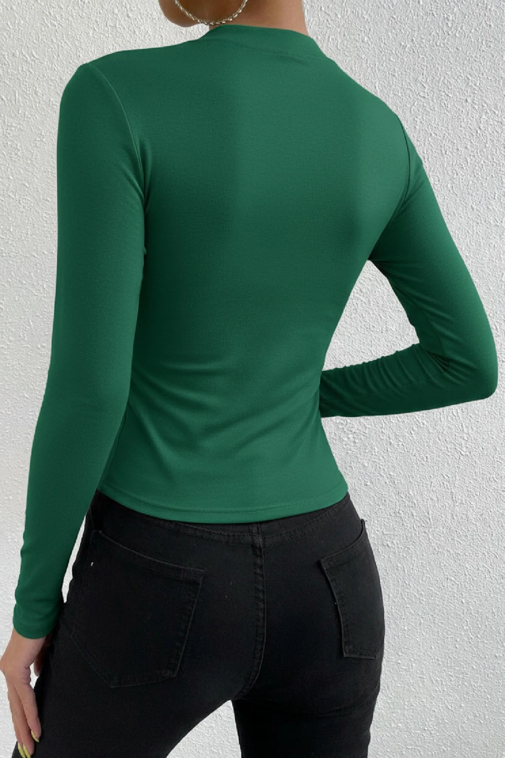 • Modern çizgilerle tasarlanmış Kadın Yeşil Belden ve Boyundan Büzgü Detaylı Uzun Kollu Bluz, doğadan ilham alan tonuyla sade ama sofistike bir zarafet sunar.