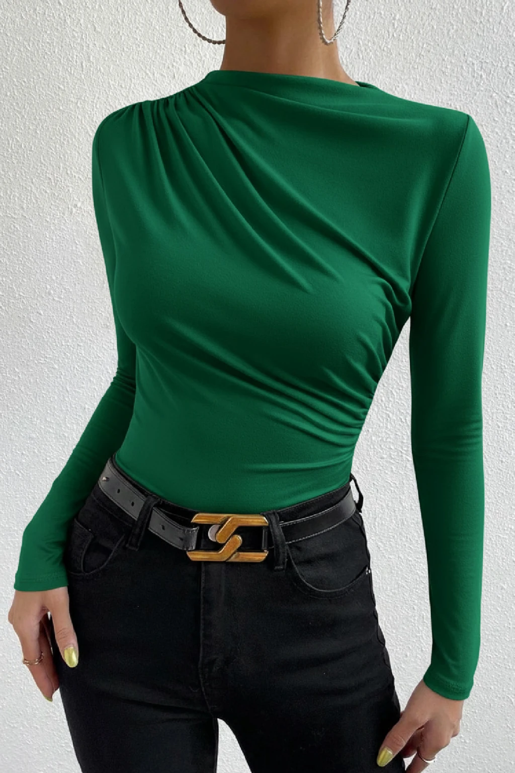 • Bel ve boyun bölgesindeki büzgü detayları, bluzu klasik parçalardan ayıran şık bir dokunuş sunar.