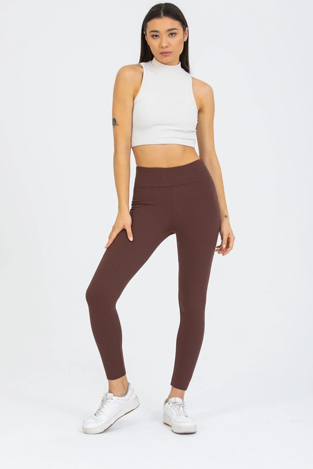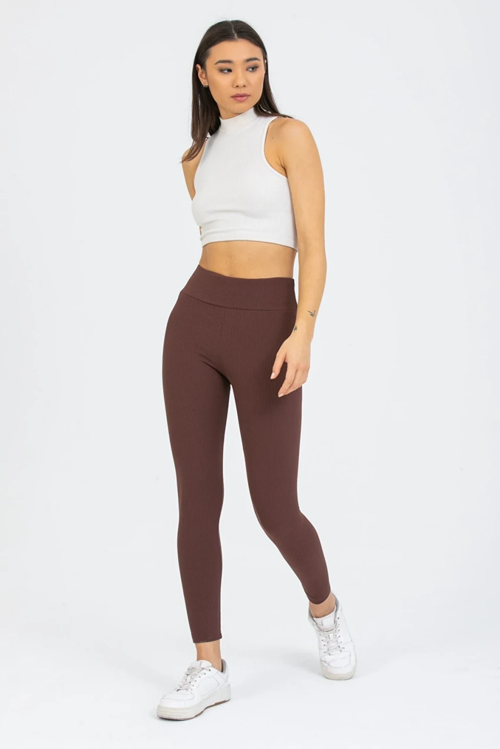 Kahverengi Yüksek Bel Fitilli Tayt 0608