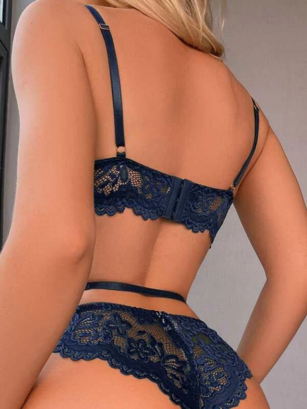 Mavi Dantel İşlemeli Jartiyerli Gecelik Takımı