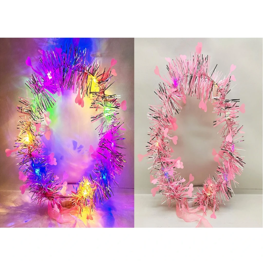 Kalp Püsküllü Gece Parıltısı 3 Modlu LED li Işıklı Taç Pembe Renk