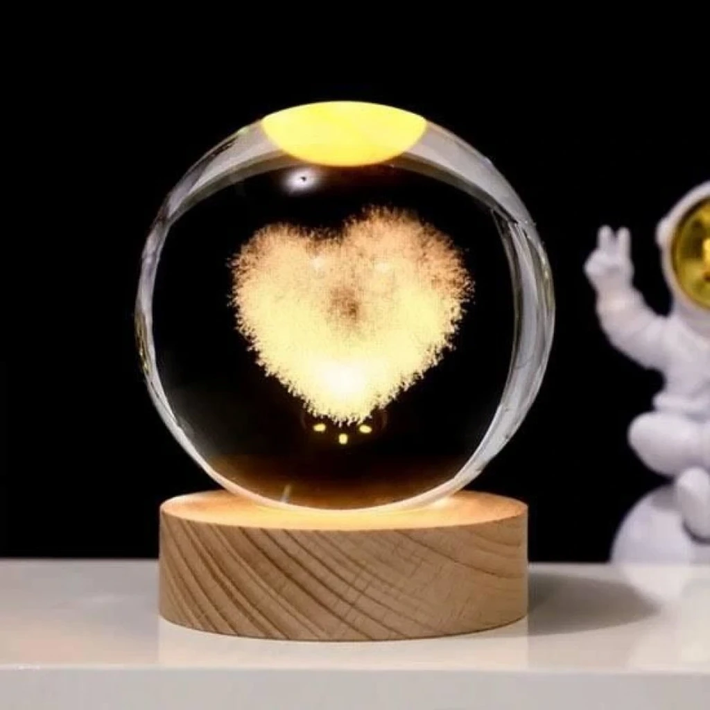 Usb li Ahşap Altlıklı Kalp Tasarımlı Cam Küre