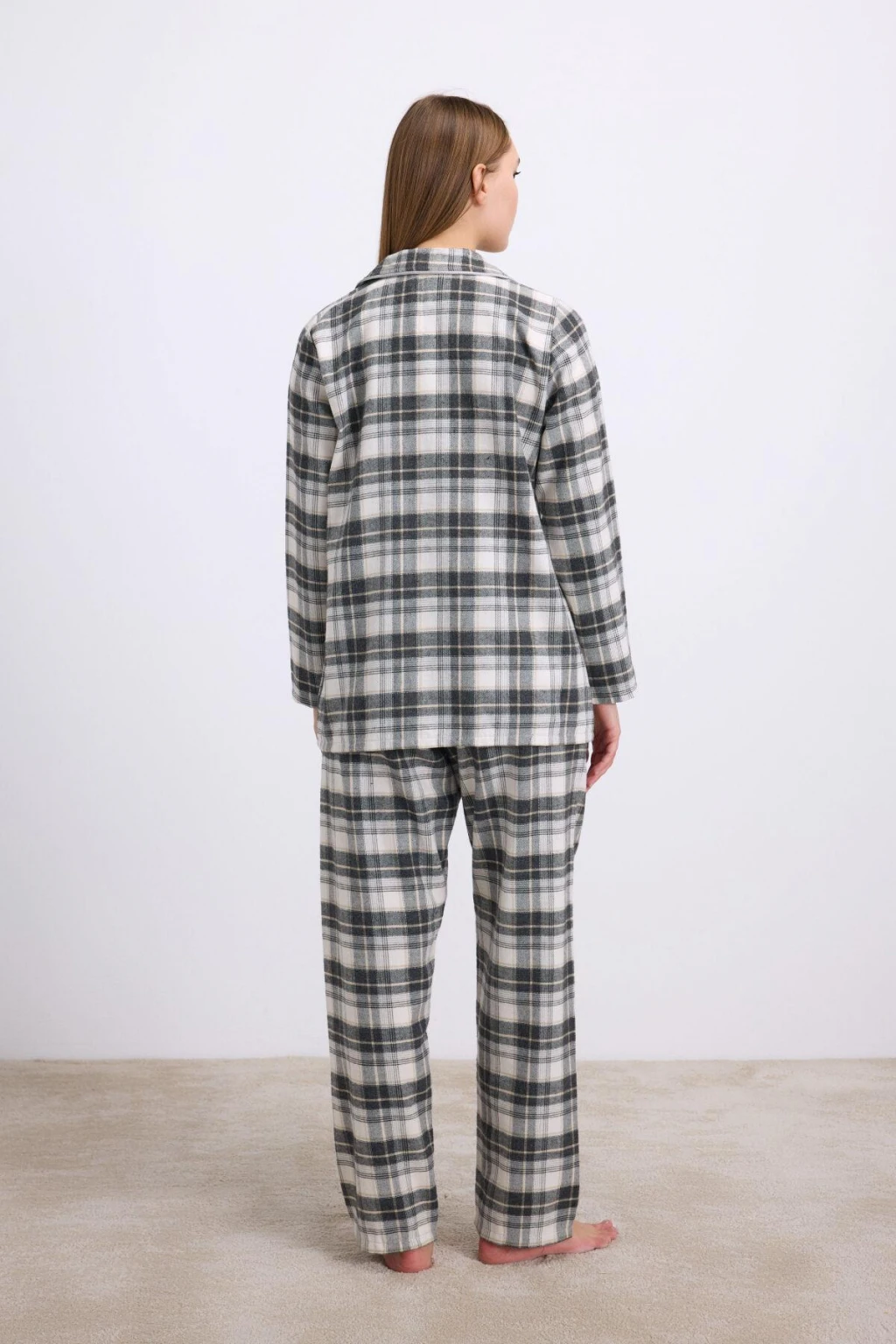 Kareli Flanel Görünümlü Uzun Kollu 2'li Pijama Takımı