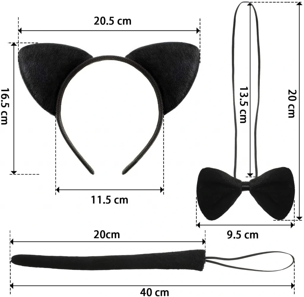 Kedi Kostüm Taç Kuyruk Papyon Seti 1 Adet