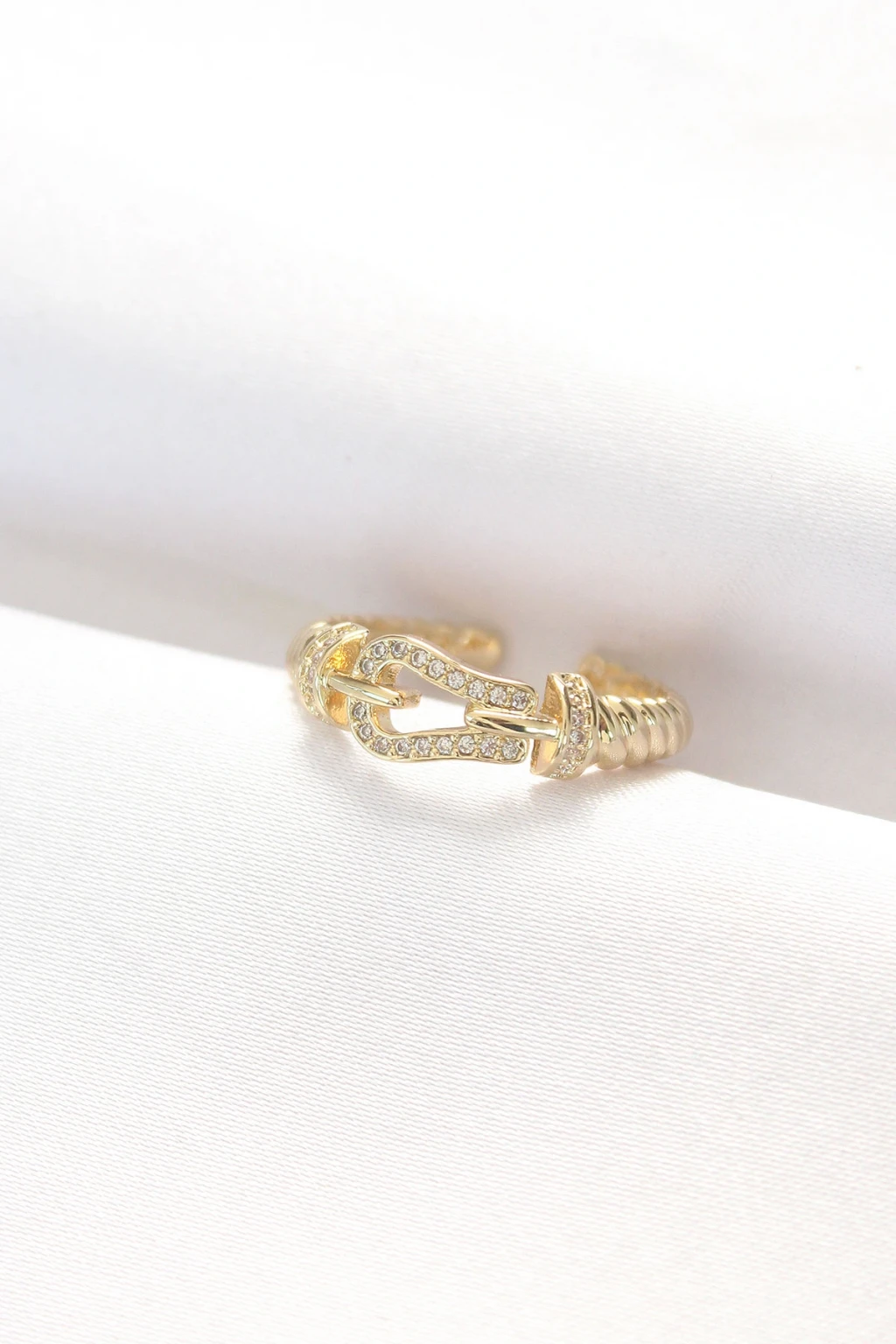 Kemer Tokası Tasarımlı Gold Renk Zirkon Taşlı Ayarlanabilir Yüzük - TJ-BYK3099