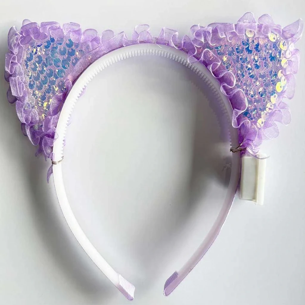 Eğlencenin Ve Şıklığın Bir Araya Geldiği Kenarları Dantelli Mor Pullu Payetli Led Işıklı Kedi Kulak Taç Ile Partilerin Yıldızı Olun!