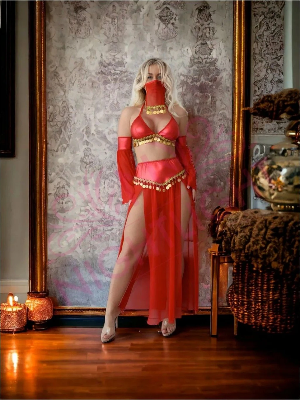 Altın sarısı aksesuarları ile birlikte şıklığınıza şıklık katacak seksi bir kostüm