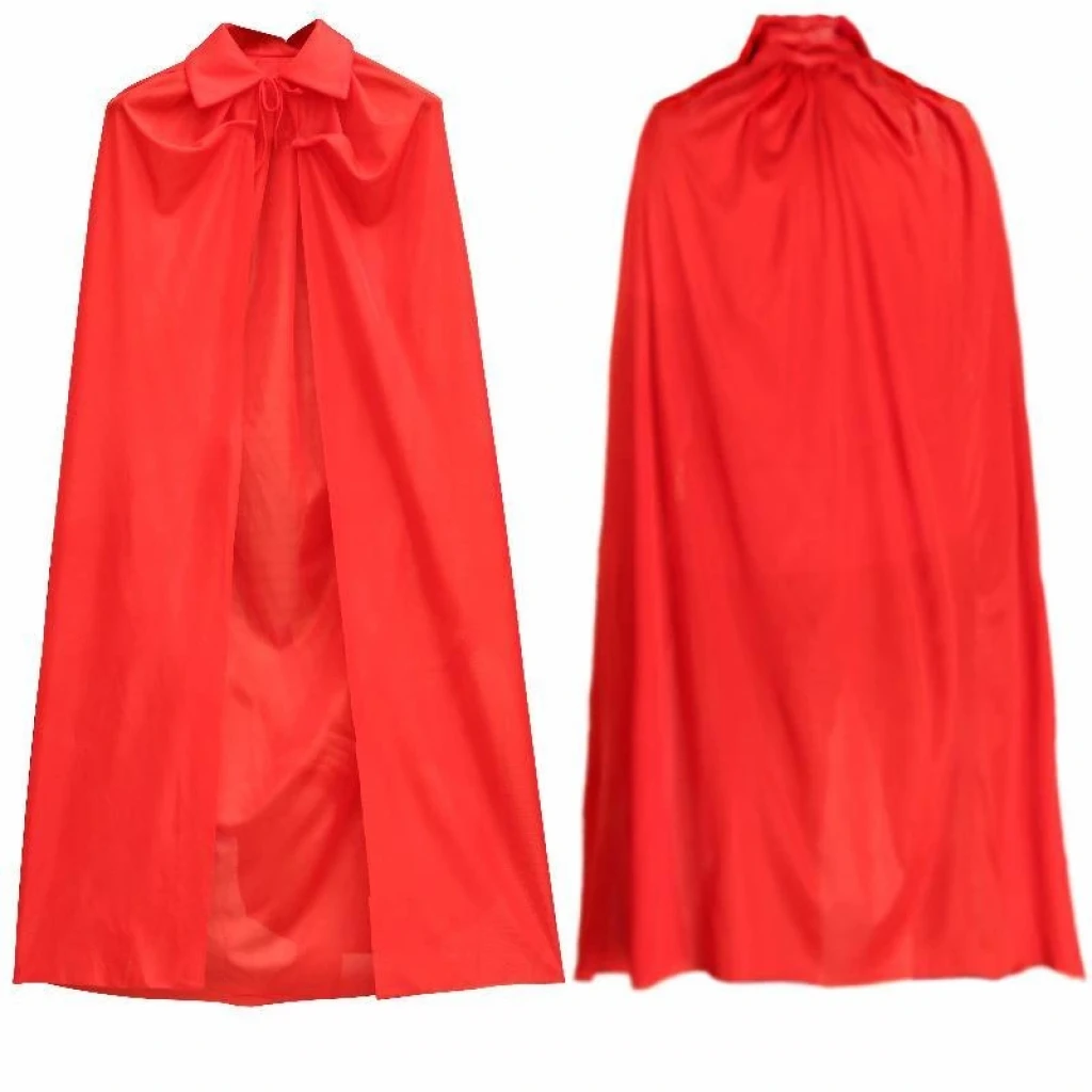 Yetişkin Boy 120 cm Kırmızı Yakalı Pelerin ve Kırmızı Cadı Şapkası