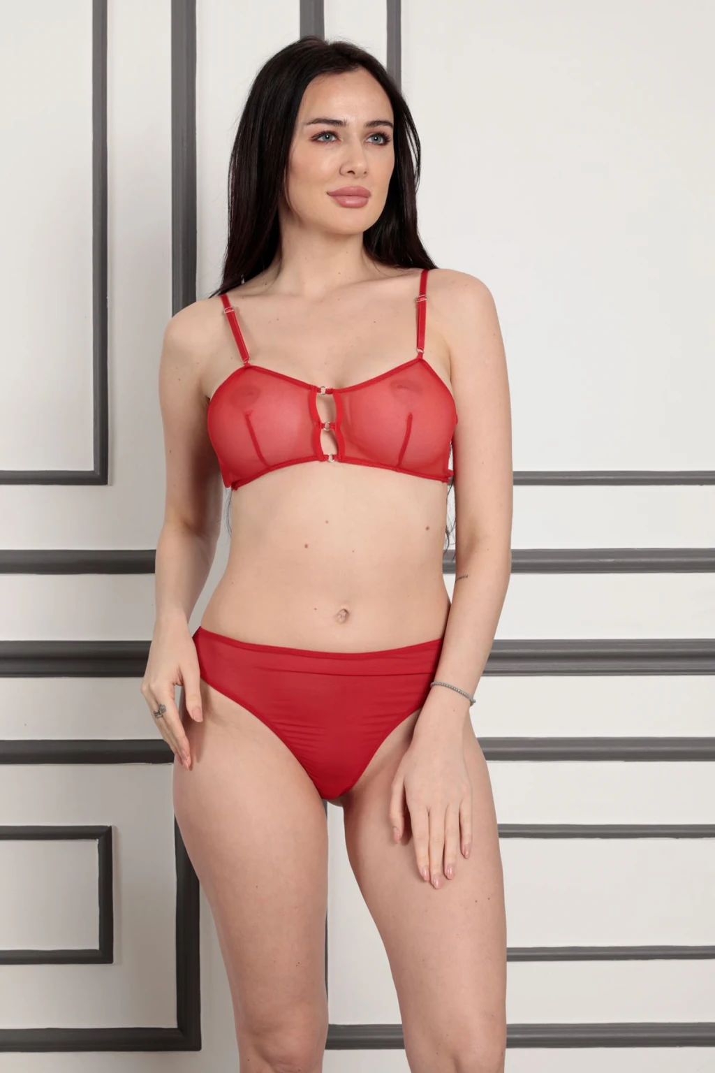 Fetiş Tarzı Turuncu Çıtçıtlı Sütyen Ve Eldiven, String Takım,transparan Detaylı Seksi İç Giyim