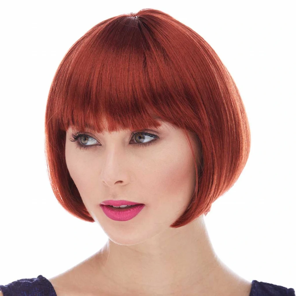Kızıl Renk Düz Kesim Astarlı Küt Parti Peruğu