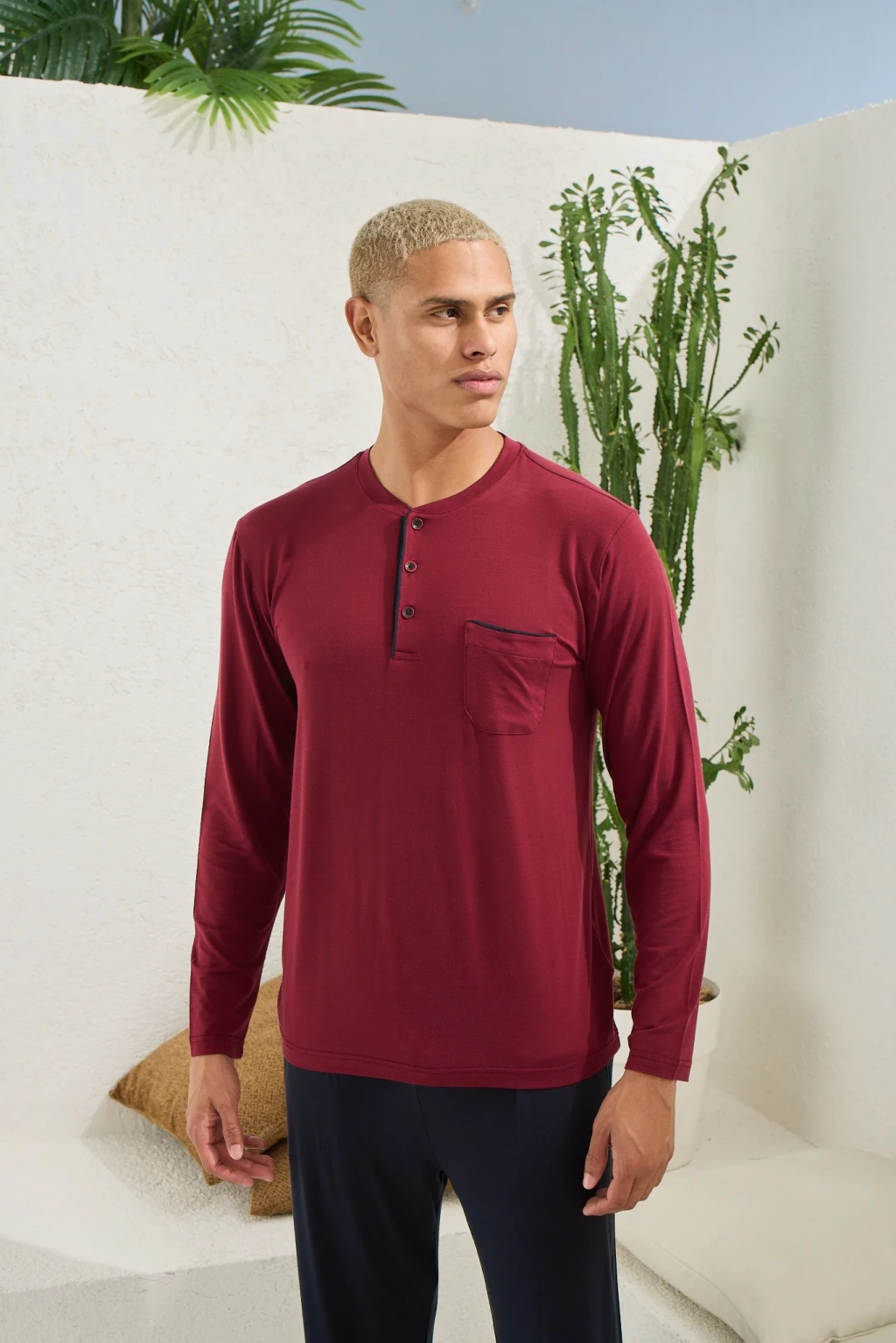 Kocabey 9220 Erkek Midi Yaka Uzun Kol Pijama Takım