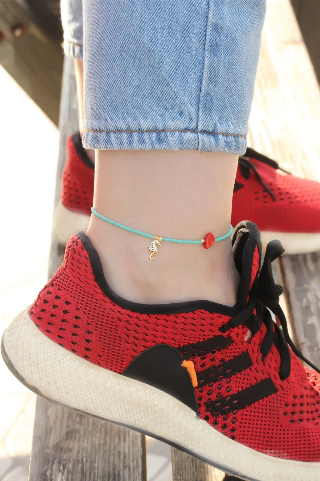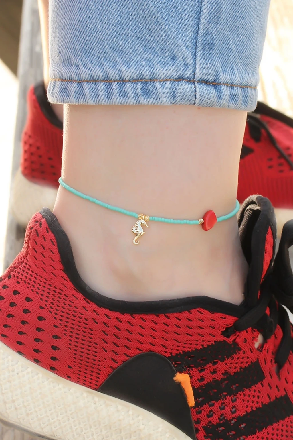 Mavi Boncuk Tasarımlı Deniz Atı Detaylı Halhal - TJ-HH1234