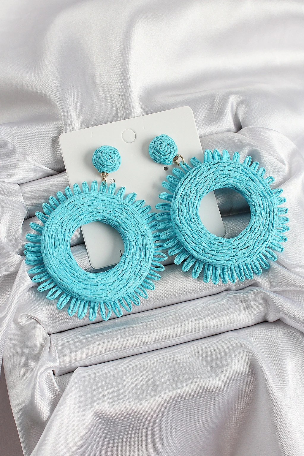 Mavi Püsküllü Halka Figürlü Hasır Örgü Model Gold Renk Kadın Küpe - TJ-BKP10709