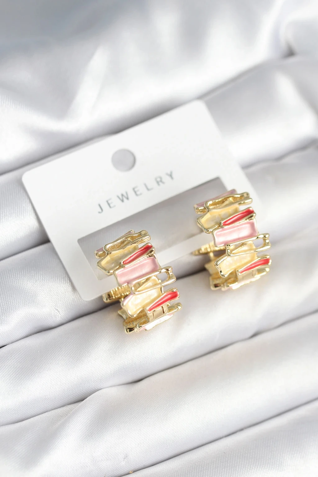 Mineli Karışık Renkli Gold Pirinç Kadın Küpe - TJ-BKP11285