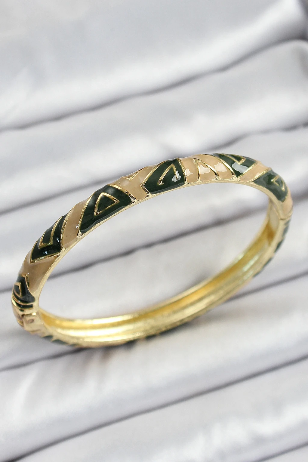Mineli Pirinç Kahverengi Siyah Geometrik Desenli Kadın Kelepçe - TJ-BB7160