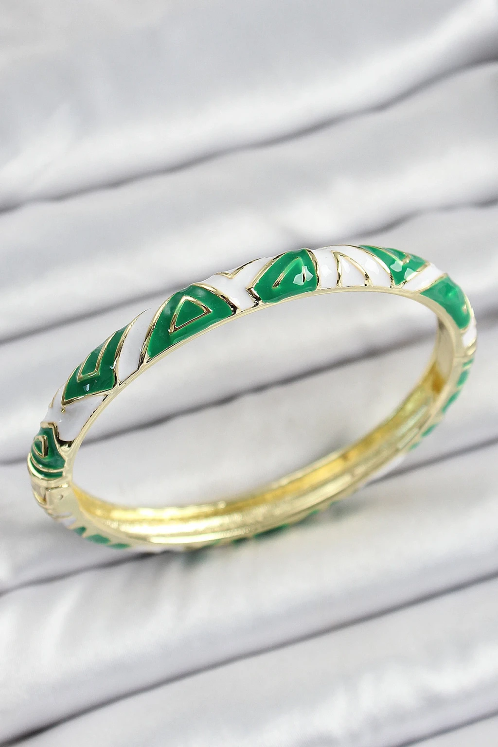 Mineli Pirinç Yeşil Beyaz Motifli Kadın Kelepçe - TJ-BB7169